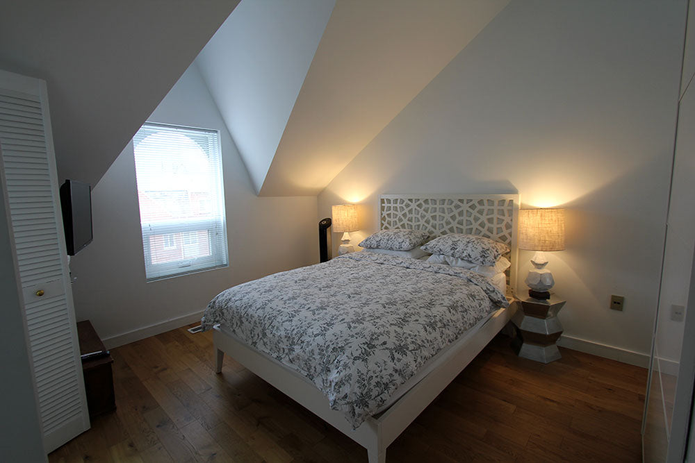3F is a third-floor room facing pleasant Sullivan Street. This room has large clerestory windows to bring in plenty of natural light. You will enjoy this comfortable and spacious room with high-vaulted ceilings and a private and luxurious washroom that overlooks the living room and garden.