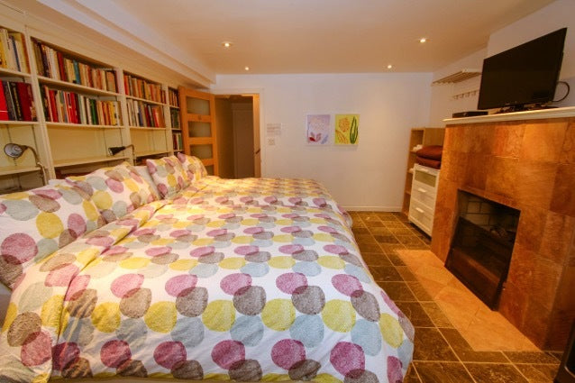 LL is a lower-floor room facing pleasant Sullivan Street. This oversized room has large bay windows to bring in plenty of natural light. You will enjoy this comfortable and spacious room with 2 double beds and your own fireplace. In addition, you have a private washroom to make this an enjoyable retreat for a family.