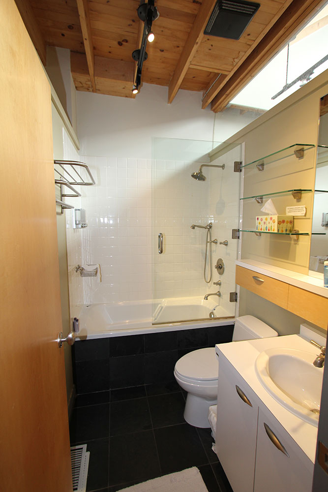 3L is a third-floor room facing a quiet residential street. This room has warm, wood-cladded cathedral ceilings and large clerestory windows that bring in plenty of natural light. A comfortable and spacious room with a private washroom makes this an enjoyable retreat for any kind of stay.